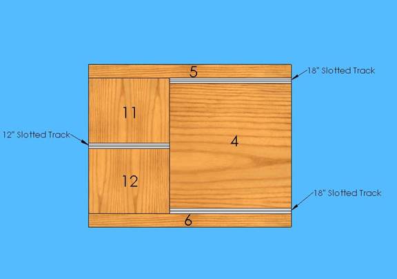 ½” screws, attach one of the 18” slotted track on top of panel 1 next to